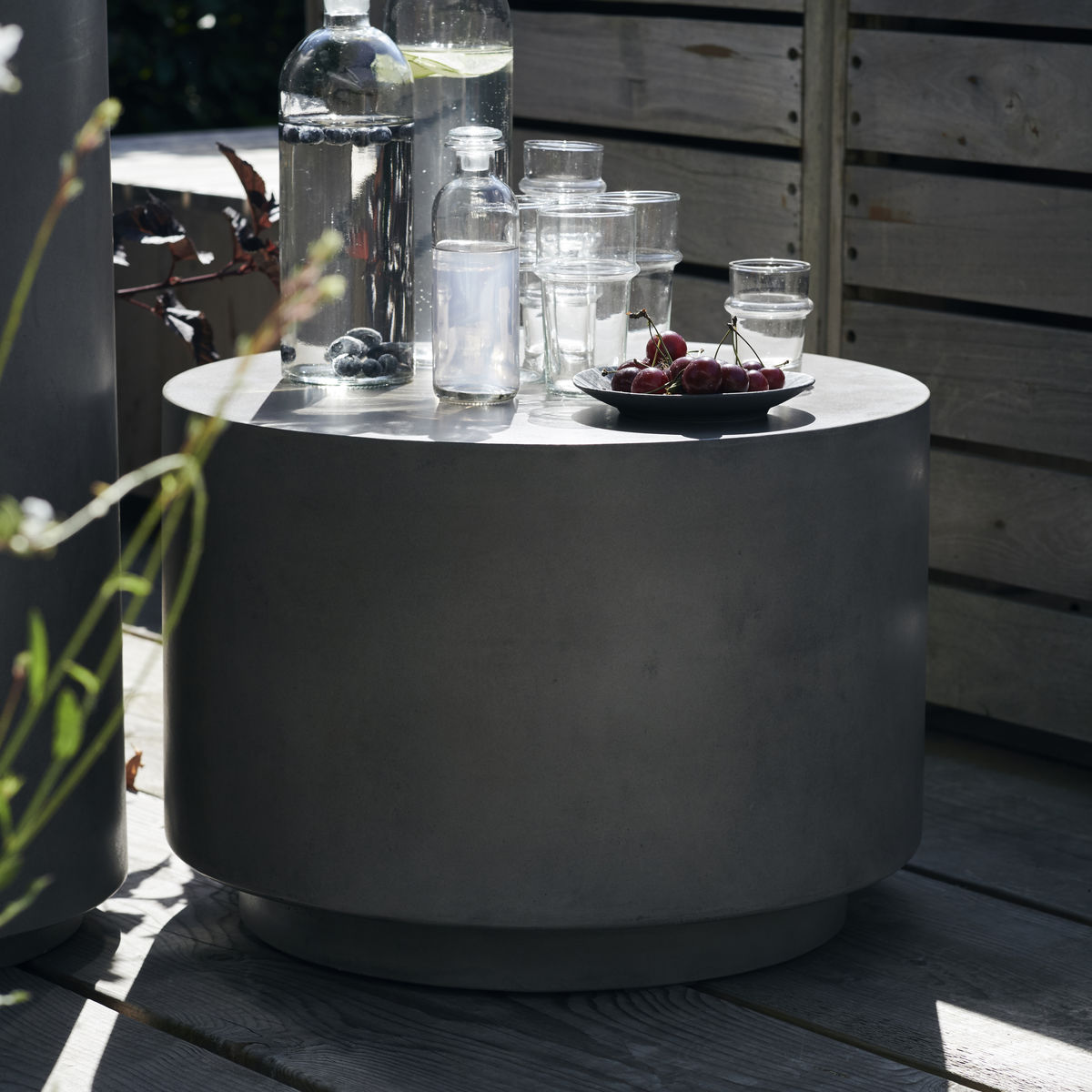 Betong er et fantastisk materiale når det gjelder møbler, og Out from House Doctor er et godt eksempel på dette. Siden betong tåler elementene og er et slitesterkt materiale, kan dette bordet brukes både innendørs og utendørs. La den minimalistiske utformingen og den glatte overflaten på bordet være en kontrast til planter og blomster på terrassen, og bruk den som et utendørs salongbord. Hvis du kombinerer det med lenestolen og benken i betong, får uterommet en tidløs og industriell appell. Og du får møbler å glede deg over i årene som kommer. Materialet er ikke frostsikkert. Fordi bordet er håndlaget, kan overflaten ha små folder, markeringer og hull som bare øker appellen til dette naturlige materialet.