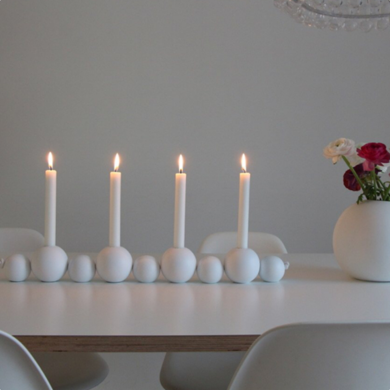 Denne lysestaken er fin å dekorere med sammen med de andre ball vasene fra Cooee.